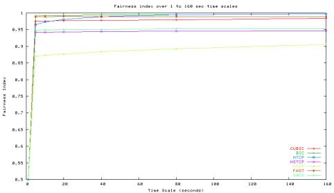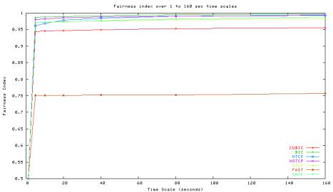 Figure 36: Fairness index of different protocols over different timescales.
